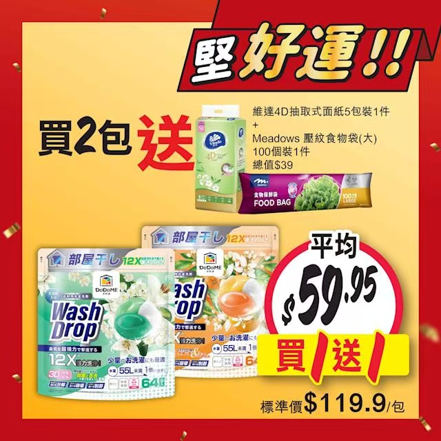 此外,个人护理及家居清洁品类亦有优惠,包括多款漱口水产品,助顾客保持口腔卫生;以及DoDoMe 3D消臭洗衣珠,洗衣同时去除异味,为衣物带来持久清新香气。