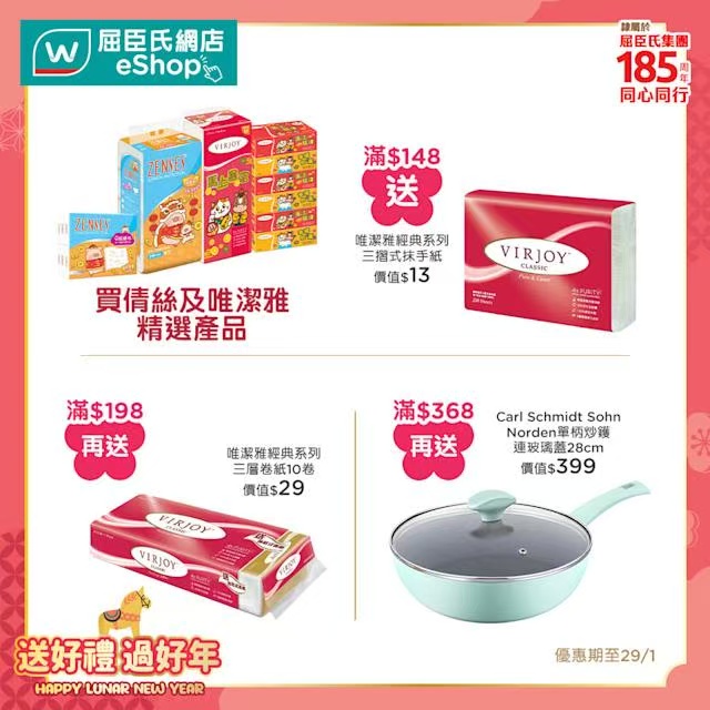 隨著農曆新年臨近,本地零售業紛紛推出節日推廣。屈臣氏網店由即日起至1月29日,推出賀年購物優惠,顧客選購精選產品滿指定金額,並輸入相應優惠碼,即可獲得額外禮品或直接扣減金額,吸引消費者辦年貨或選購賀禮。