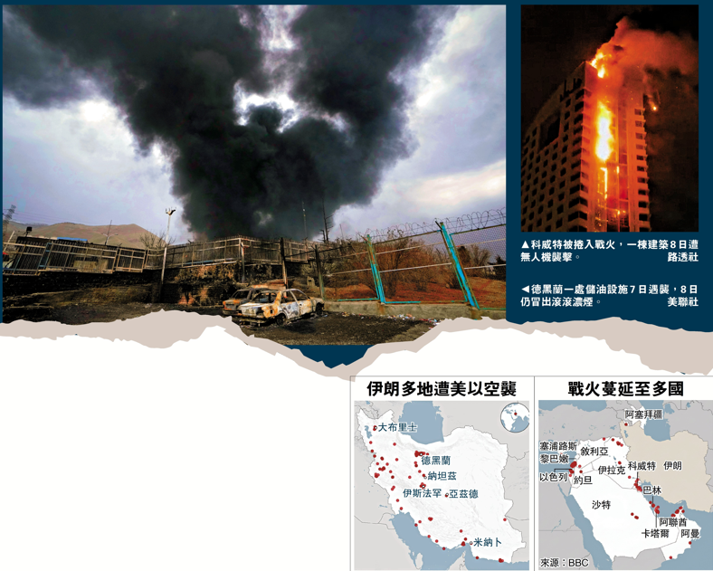 戰火已波及中東多國。以軍8日空襲黎巴嫩首都貝魯特市中心一棟酒店建築,造成至少4人死亡。以方宣稱此次襲擊的目標是伊朗伊斯蘭革命衛隊「聖城旅」駐黎巴嫩部隊的一名重要指揮官。黎巴嫩公共衛生部數據顯示,自3月2日以來,以色列對黎巴嫩的空襲已造成394人死亡,其中包括83名兒童,另有逾千人受傷,大量民眾逃離家園。