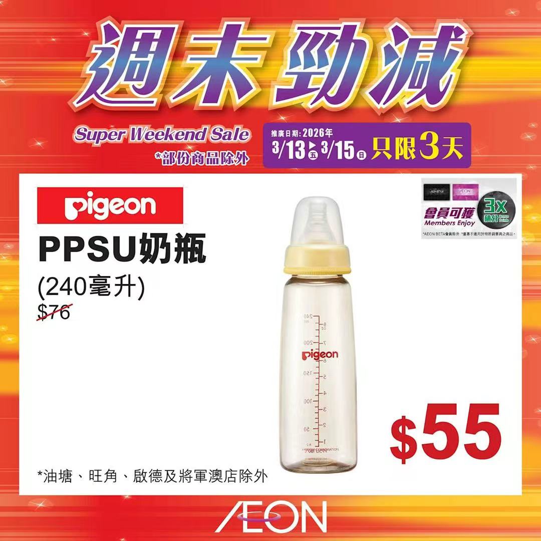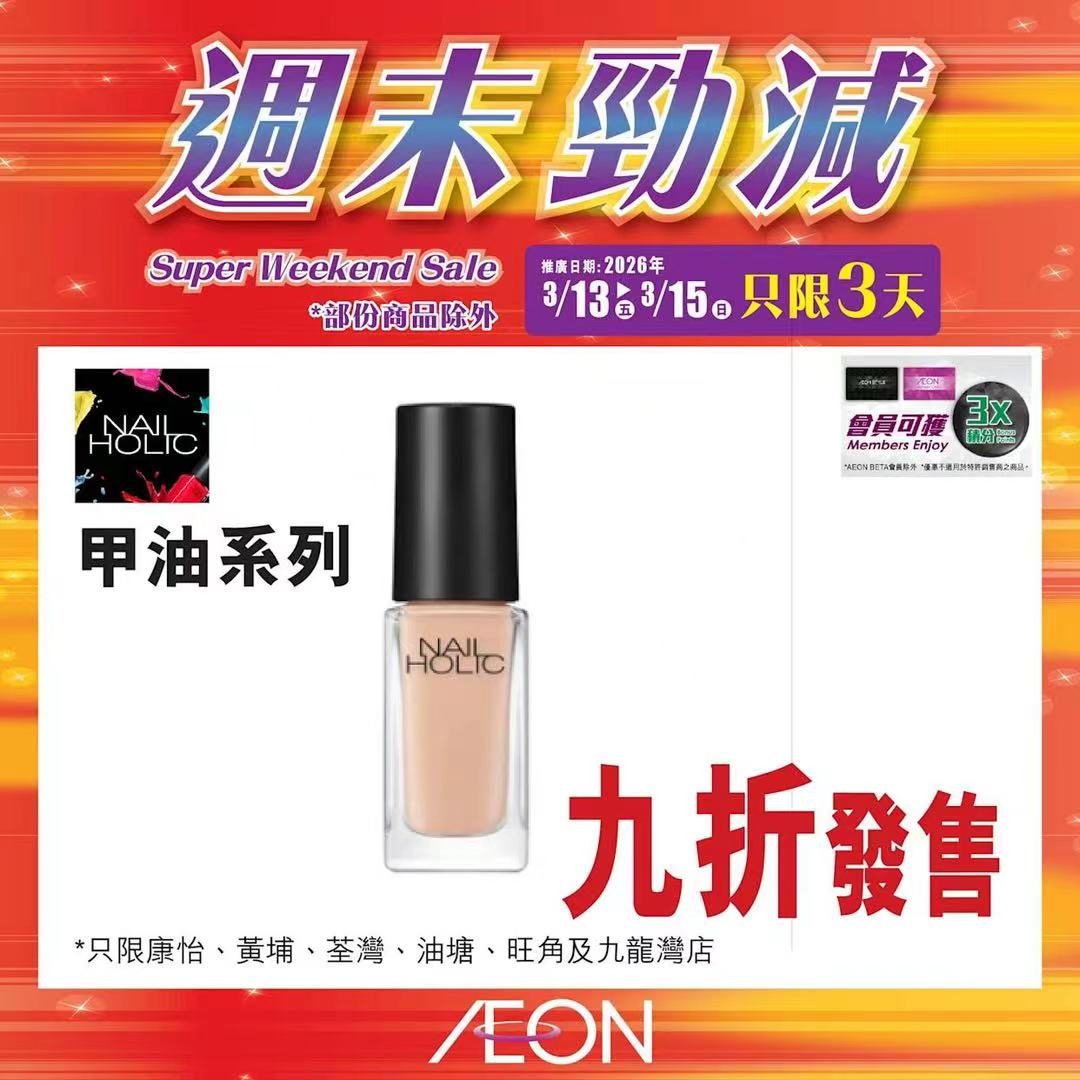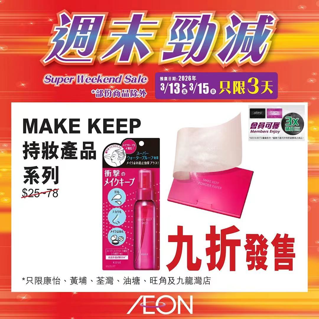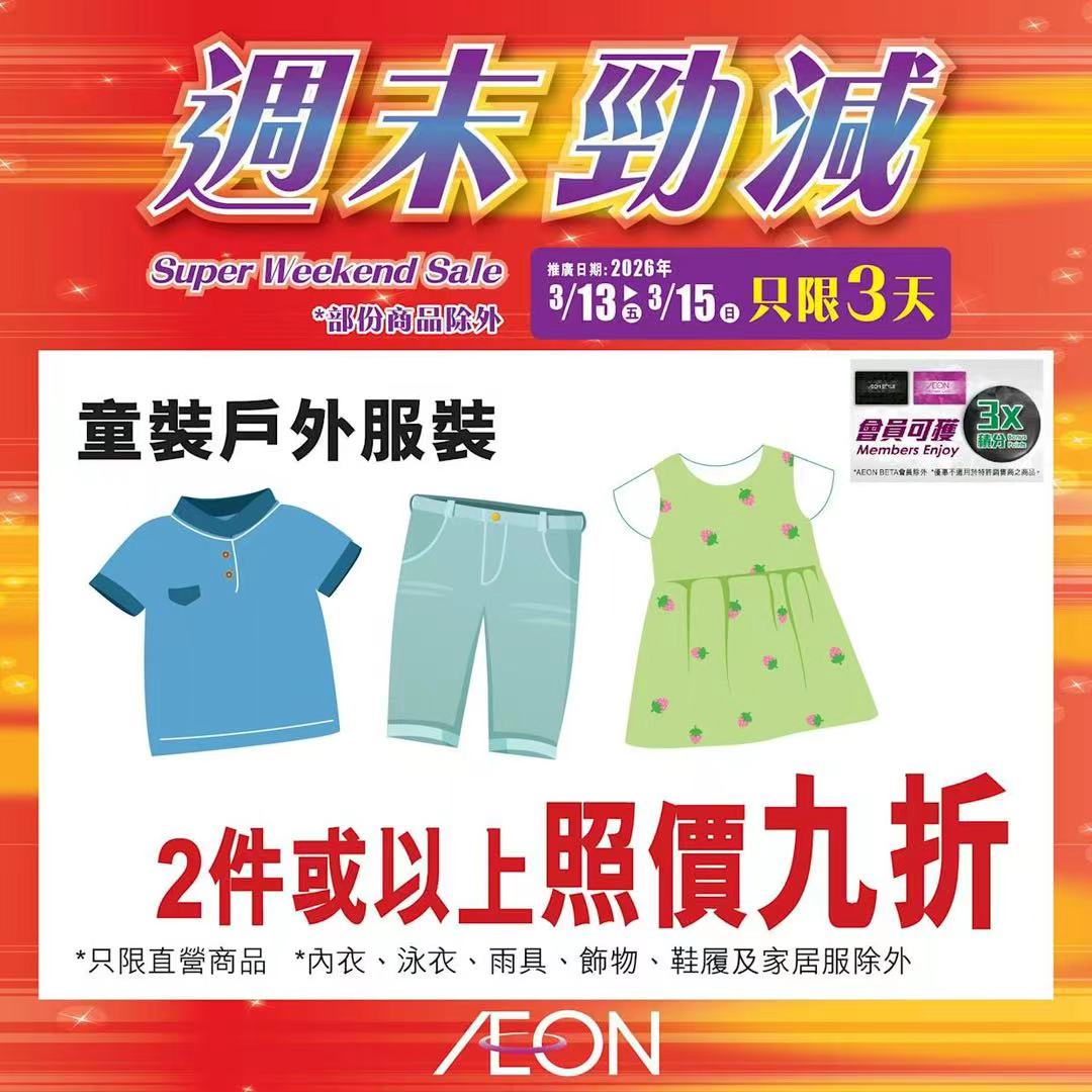 踏入三月中旬,Aeon再度推出「周末勁減」優惠活動,多款人氣食材及飲品以震撼價發售,為精明消費者提供入貨良機。據了解,本次推廣期由即日起至2026年3月15日,顧客須透過Aeon Mobile應用程式選購,方可享有上述優惠價格。