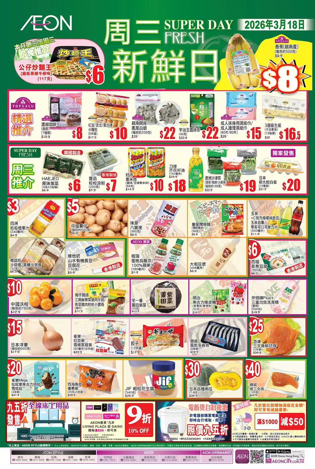 AEON周三「新鮮日」推限時優惠 精選貨品低至「10元」
