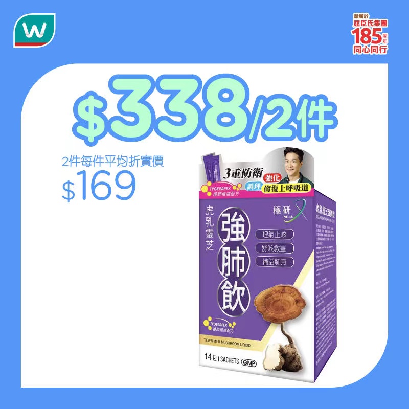 屈臣氏近日精選一系列健康產品推出限時優惠,涵蓋護肝、健腦、關節及免疫力等多元健康需求。其中「肝美健」40粒裝推出買四送一優惠,並可享額外九折;「智敏捷醫學養腦配方」則設買十二件即贈送價值699元的20吋行李箱。全線「善存」及「佳存」產品兩件享七折優惠;「5合1特強關節配方」120粒孖裝每件售504元;「極研虎乳靈芝強肺飲」14包裝兩件售338元。此外,「易賞錢」會員可專享「ESSENTIALE健肝素」120粒每件620元之會員價。