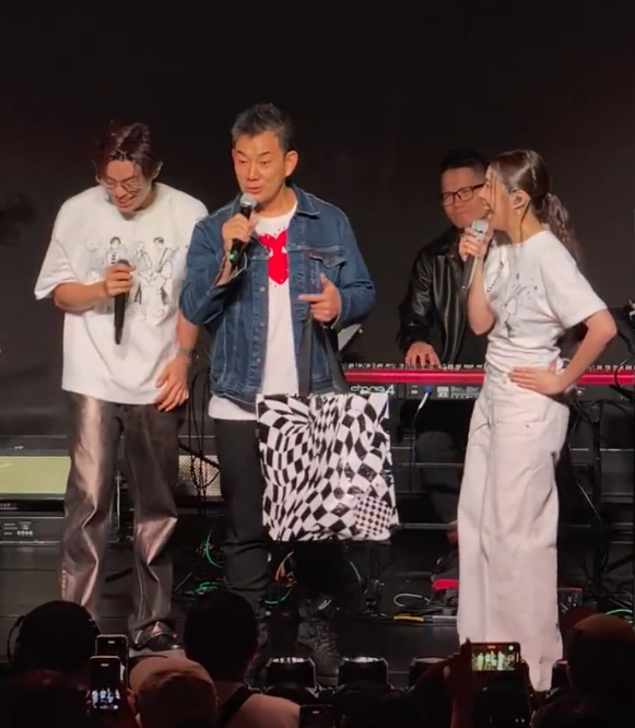 兩晚演出各有亮點,首晚告五人特意為香港觀眾準備了 “粵語福利”,不僅清唱了一小段張國榮的經典曲目《追》,還現場演繹了他們的第一首廣東歌《成長的錯》,熟悉的旋律搭配粵語唱腔,瞬間拉近與本地觀眾的距離。而第二晚的驚喜則來得更為突然 —— 在點歌環節進行到一半時,任賢齊意外現身舞台,這一幕讓告五人成員又驚又喜,甚至一時忘了接下來的流程。登台後的小齊十分貼心,不僅帶來三匹可愛的小馬毛公仔作為禮物送給告五人,還在毫無準備的情況下,即興與樂團合唱了一小段《在這座城市遺失了你》,熟悉的嗓音與默契的配合,讓台下 “哈瓜” 與小齊的粉絲瞬間沸騰,不少觀眾激動得起身歡呼,直呼 “這波回憶殺太值了”。