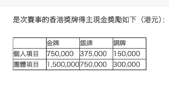 為激勵港隊運動員爭創佳績,香港賽馬會宣布將「優秀運動員獎勵計劃」預算大幅提升百分之五十,個人項目金牌獎金躍升至75萬港元,團體項目金牌獎金更達150萬港元,此舉獲體育界普遍認同為重要鼓舞。香港賽區將負責承辦八個競賽項目,包括劍擊、沙灘排球、男子手球、U22男子籃球、七人欖球、高爾夫球、場地單車及三項鐵人,預計吸引大量市民入場支持。