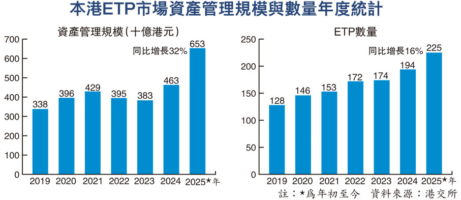 為提升市場效率,港交所在去年曾宣布,計劃今年透過網上平台數碼化及自動化ETP實物申購及贖回機制,預計相關措施可在年底前完成技術準備。這項改革將縮短交易結算時間,降低操作風險,並提升投資者體驗。展望未來,Mesnard-Sense指出,港交所注意到投資者對特定主題ETF的興趣日益濃厚,當中涉及創新科技、生物科技、人工智能(AI)等領域,他形容這些都是市場突破點。港交所將繼續密切研究相關產品規劃,進一步豐富本港ETP生態圈,以應對不斷演變的投資需求,並鞏固香港作為亞太區資產管理中心的領導地位。