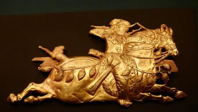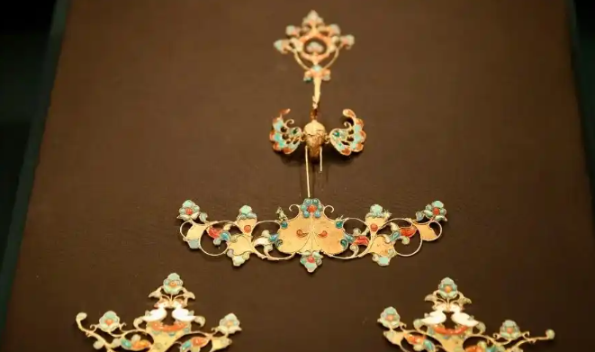 展品類別豐富多樣,涵蓋首飾、腰帶飾件、車馬飾物、禮儀用具等生活與禮儀用器,每件作品都展現出非凡的工藝水平與時代特色。特別值得關注的展品包括:公元前15至前13世紀的喇叭口金飾,見證了早期黃金工藝從歐亞大陸西向東傳播的歷程;戰國至漢代的捲曲動物紋飾牌,呈現出草原遊牧民族獨特的藝術審美;唐代金飾則融合絲綢之路多元文化元素,展現盛世的開放氣象;而遼宋時期的金帶鈎與頭飾,更是中原與北方草原文化深度融合的實物例證。這些展品不僅具有極高的藝術價值,更承載著重要的歷史與文化信息。