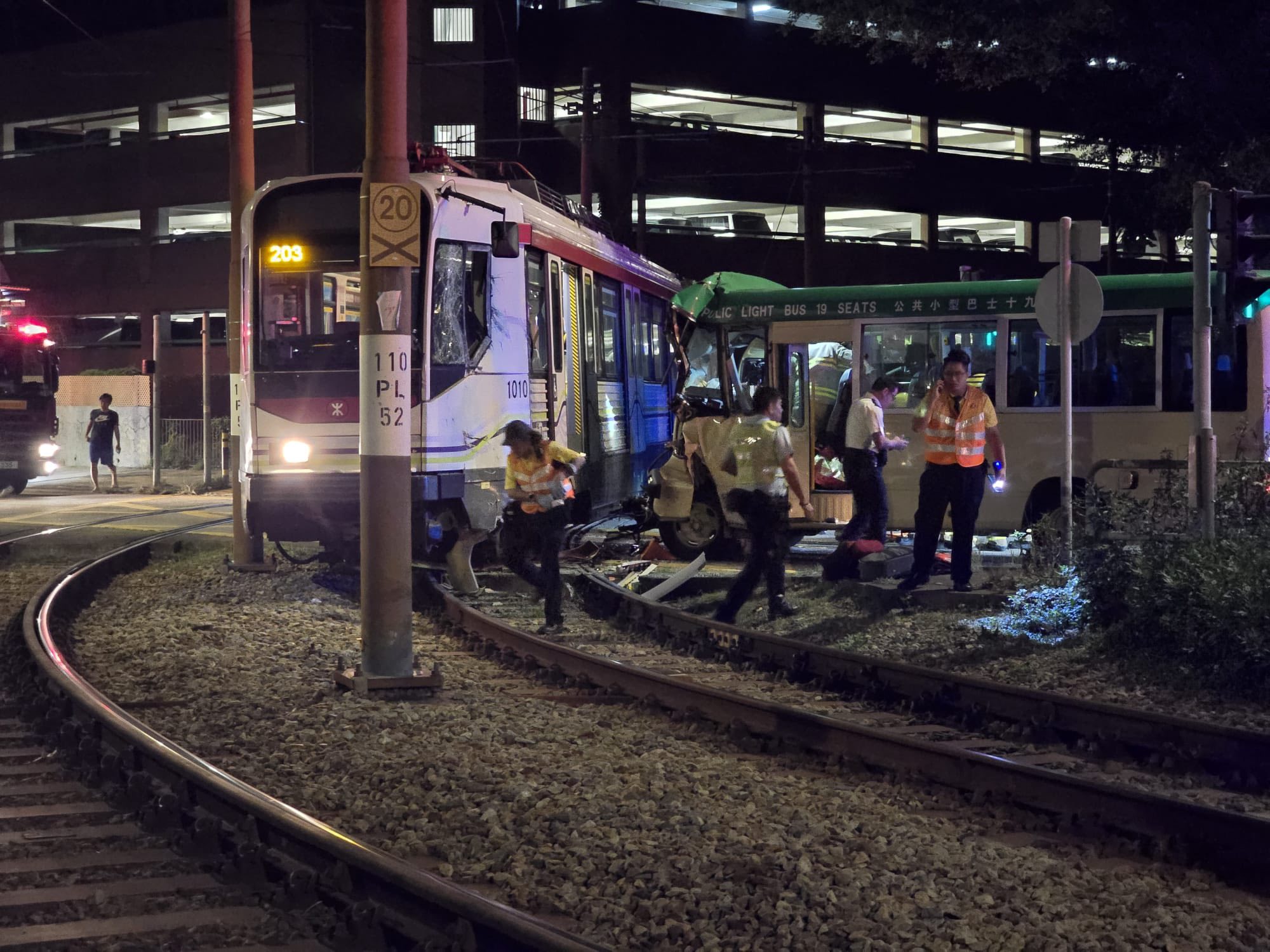 警方表示,今日凌晨0時48分接報,一輛輕鐵列車沿青麟路往屯門方向行駛,另一輛小巴則沿青麟路往落馬洲方向行駛,當駛至青麟路時,小巴懷疑撞向輕鐵列車。消防部門接報後迅速到場救援,64歲馮姓小巴男司機腳部受傷被困,需由消防員救出,34歲何姓輕鐵車長則頭部受傷。此外,兩車共6男4女乘客受輕傷,年齡介乎16歲至66歲,所有12名傷者均清醒,被送往屯門醫院治理。
