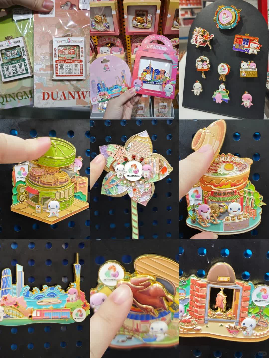 「喜洋洋」和「樂融融」的周邊產品種類繁多,不僅僅有傳統的冰箱貼、手辦模型,還涵蓋了筷子托、運動毛巾、手機支架、筆記本、書籤等實用單品。其中,冰箱貼因其獨特的互動功能(例如「一鍵開蓋」的煲仔飯冰箱貼)以及多樣化的運動主題和花朵旋轉設計,成為了最受歡迎的單品之一,尤其是在文博會參與者、運動愛好者和文創收藏者中。更有不少是香港限定版本,更增加了其收藏價值。