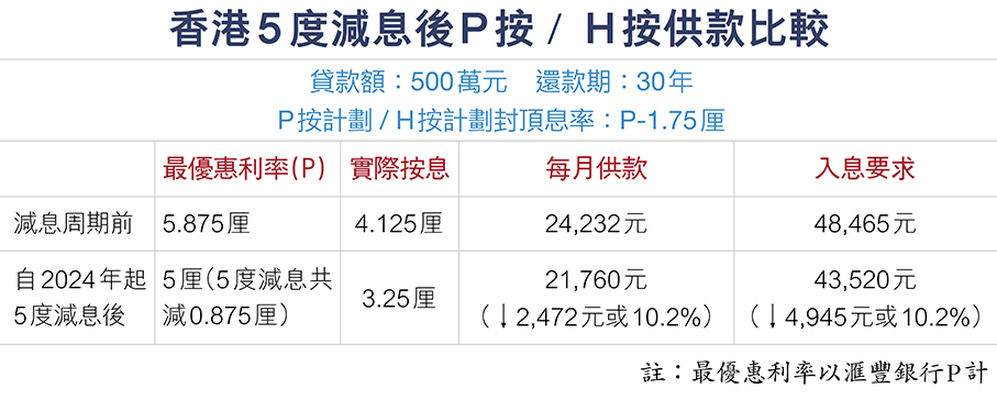 緊隨美國步伐,香港金融管理局亦將貼現窗基本利率下調25個基點至4厘。金管局總裁余偉文指出,美聯儲決定大致符合預期,並提醒市民需注意未來利率走勢的不確定性,在作出置業、投資或借貸決定時應審慎管理風險。回顧本輪減息周期,香港銀行已跟隨減息五次,累計下調0.875厘。經絡按揭轉介營運總監張顥曦分析,現時P按及H按封頂息率已由周期前的4.125厘降至3.25厘。以一個500萬港元、30年期的按揭貸款計算,經過五次減息,業主每月供款額減少2,472港元,降幅達10.2%,有效紓緩供樓壓力。