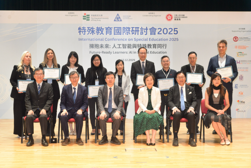 教大校長李子建教授於致辭中詳細闡述了AI在特殊教育領域的應用前景與實踐方向。他指出:「目前全港有接近八萬名有特殊學習需要的學生,正於主流中、小學及特殊學校中學習。為協助教師掌握並善用前沿AI工具,從而優化教學質素,教大一直積極推動AI與教育融合的科研與專業發展。我深信,AI技術在促進融合教育方面的實踐已逐步落地,它能有效協助教師識別學生個別需要、提供適切教學調整,這正與教育包容、平等及多元發展的核心價值緊密呼應。」